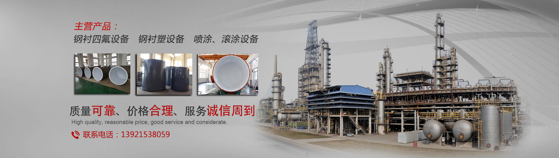 我公司專(zhuān)業(yè)生產(chǎn)防腐設(shè)備,主要產(chǎn)品有:鋼襯四氟、鋼襯四氟儲(chǔ)罐、反應(yīng)釜內(nèi)襯四氟、鋼襯四氟管道,四氟換熱器、PTFE襯里設(shè)備、鋼襯塑儲(chǔ)罐、鋼襯塑管道、攪拌槳等等。產(chǎn)品可應(yīng)用于化工、氯堿、海水淡化、印染、顏料、儲(chǔ)運(yùn)、電廠(chǎng)、稀土、冶金、電子、制藥、釀造等行業(yè)...